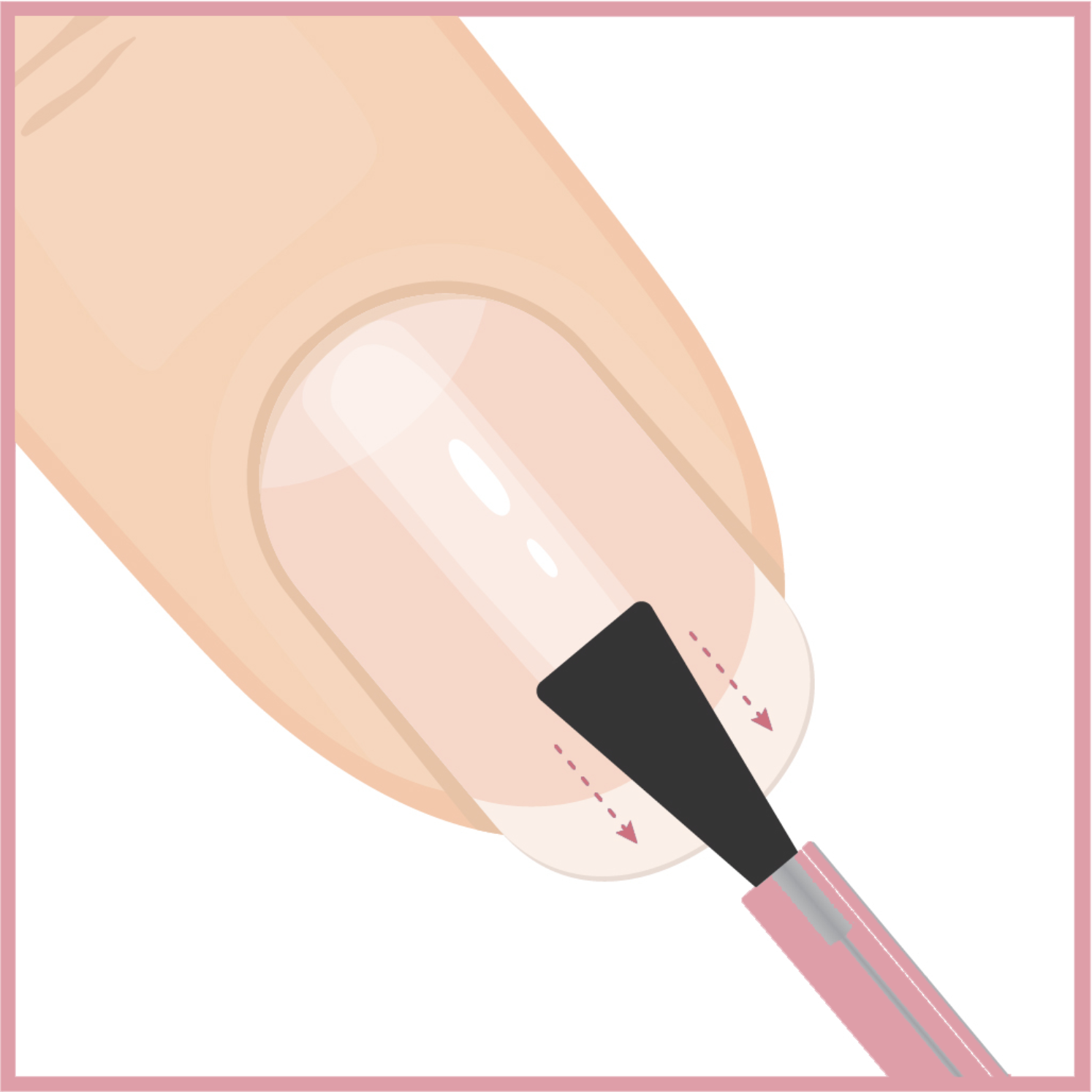- Zorg dat er ook een laagje gellak op je (vrije) nagelrand zit, zodat er een beschermende afdichting ontstaat rond de punt en de zijkant van je nagels.
